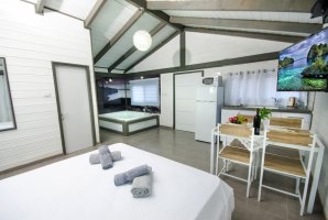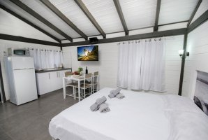 האחוזה כוללת שלוש בקתות עץ חמימות, המותאמות לזוגות ולמשפחות. כל יחידה מצוידת במסך LCD עם חיבור ל-YES, פינת ישיבה ושולחן אוכל, להבטחת נוחות מירבית. המטבחים המאובזרים כוללים קומקום חשמלי, תנור, כיריים, מקרר, מקרר קטן ומיקרוגל להכנת ארוחות מושלמות.