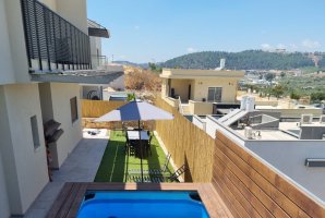 האטרקציה המרכזית היא חצר נופש פרטית משלכם עם בריכה מגודרת ומחוממת בעונה. לצד הבריכה פינות ישיבה ושיזוף, מדשאה ותאורת גן. אוהבים פינג פונג? יש לנו בשבילכם שולחן בחצר. חובבי המנגל ישמחו לגלות עמדה גדולה יחד עם מטב חיצוני.