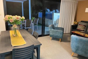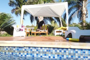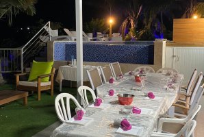 במתחם החיצוני תוכלו ליהנות מבריכת שחייה פרטית וג'קוזי ספא מפנק, לצד ריהוט גן איכותי, מיטות שיזוף וערסל. לחובבי המנגל, ישנה עמדת BBQ להשלים את החוויה.