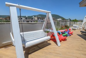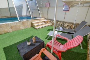 5 צימרים מטופחים מוקפים חצר נופש עשירה באטרקציות. בריכת שחייה מגודרת, מקורה ומחוממת בעונה עומדת לרשות אורחי הצימרים בלבד. לצד הבריכה פינות ישיבה ושיזוף. מגיעים לצימר עם ילדים? תמצאו פינה עם משחקי חצר בעבורם, שולחן פינג פונג וגם טרמפולינה.