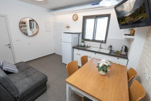 סלון משפחתי ממתין לכם בכל צימר עם פינת ישיבה, מסך שטוח, ממיר הוט, שולחן אוכל ומטבחון עם מכונת אספרסו, תמי 4, מדיח, כיריים, תנור ועוד. המטבח נוף לשימוש כך שתוכלו לבשל בו את האוכל הביתי שאתם אוהבים.
