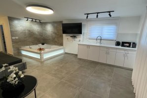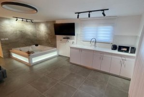 בסוויטה המאובזרת תמצאו את כל מה שצריך לחופשה מושלמת: מסך LCD, פינת ישיבה נוחה, שולחן אוכל, וארונות אחסון מרווחים. המטבח המודרני כולל כיריים, מקרר, מיקרוגל וקומקום חשמלי, כך שתוכלו ליהנות מכל ארוחה בנוחות מירבית. חדר הרחצה מצויד במגבות רכות, שמפו ומרכך, וגם אמבט ספא מפנק.