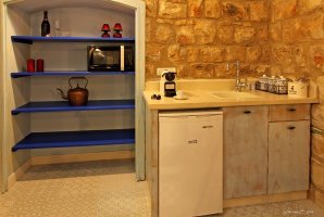 איזה אבזור קיים במטבח של בית האומנים?האבזור הקיים במטבח של בית האומנים: קומקום חשמלי, מכונת אספרסו / קפה, כיריים, מקרר קטן, מיקרוגל, טוסטר.