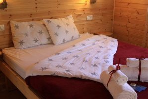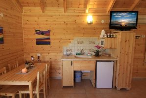 הבקתות מרוהטות ומאובזרות בקפידה על מנת שאתם תרגישו במהרה ממש כמו בבית. בכל בקתה תמצאו מיטה זוגית מפנקת, מסך טלוויזיה עם מבחר ערוצים, מיזוג אוויר, פינת קפה, אינטרנט אלחוטי ועוד.
