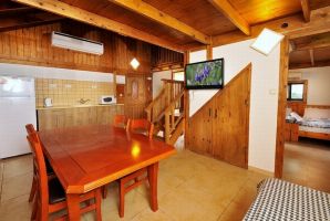 מיטה זוגית נוחה ומפנקת ממתינה לכם בכל בקתה עם מצעים איכותיים וכלי מיטה נוחים. הבקתות כולן ממוזגות ונעימות לשהייה בכל עונות השנה. בכל בקתה תמצאו פינת ישיבה נוחה, מסך טלוויזיה עם מבחר ערוצים, חדר רחצה עם ג'קוזי, מרפסת פרטית עם פינת ישיב, קומת גלריה ללינת ילדים. מטבחון מאובזר בכל יחידה מאפשר הכנת ארוחות קלות עם כיריים, מקרר, מיקרוגל, פינת קפה, קומקום חשמלי, כלי הגשה בסיסיים.