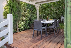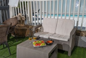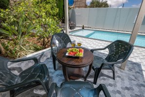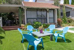את שתי הבקתות מקיפה חצר נופש מטופחת עם בריכה פרטית מחוממת בהתאם לעונה, הבריכה מגודרת לבטיחות הילדים. בחצר גם פינות ישיבה, שולחן גינה, מטבח חיצוני ועמדת מנגל. אתם תיהנו לפתוח את היום בבריכה ולסיים אותו עם רחצה לילית וארוחת ברביקיו.