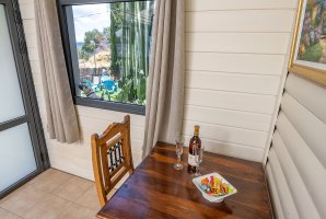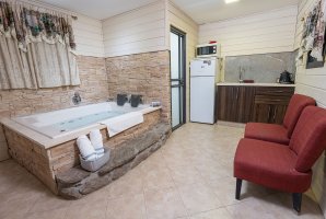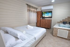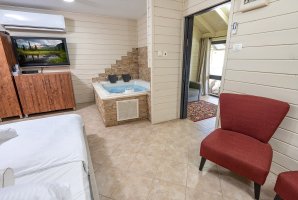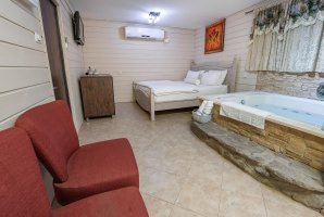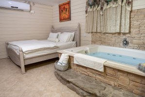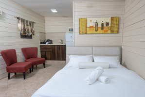 לינה במיטה זוגית נוחה + אופציה להפוך את ספת הסלון למיטה נוספת עבור הילדים. בפינת הסלון מסך שטוח ומגוון ערוצים של הוט. המטבחון מתאים להכנת ארוחות קלות כולל כיריים. הפינוק המרכזי בצימר הוא אמבט ספא זוגי עם זרמים.