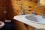 הבקתה הלבנה לא כוללת חדר רחצה, הג'קוזי ביחידה משמש כאמבט רחצה.