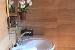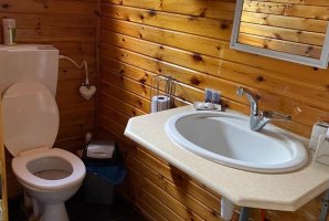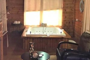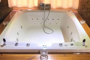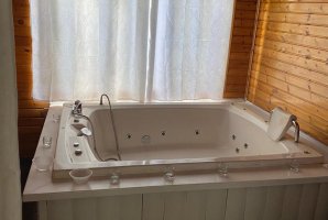 הבקתה הלבנה לא כוללת חדר רחצה, הג'קוזי ביחידה משמש כאמבט רחצה.