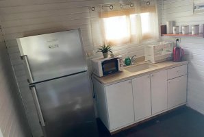 איזה אבזור קיים במטבח של בקתות דרך האושר המקורי?האבזור הקיים במטבח של בקתות דרך האושר המקורי: קומקום חשמלי, מקרר, כיריים, מיקרוגל.