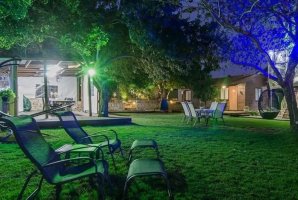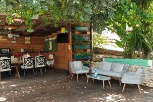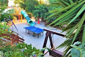 במתחם החיצוני מחכות לכם פינות ישיבה נוחות, ערסלים, מתקני חצר לילדים ובריכת שחייה פרטית מחוממת ומגודרת. תיהנו גם מאטרקציות כמו פינג פונג וכדורגל שולחן, וכל זה עם נוף פנורמי להרים ולים.