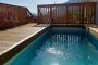 הבקתות כולן מוקפות חצר נופש עשירה ומטופחת עם מדשאות, בריכה פרטית, פינות ישיבה, מיטות שיזוף, עמדת מנגל, תאורת גן ונופים קסומים. הבריכה מגודרת לבטיחות מקסימלית.