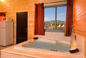 כבר במבט ראשון תרגישו את האווירה הקסומה של בקתות העץ. בכל בקתה מיטה זוגית נוחה ומיטות נוספות בקומת הגלריה. בקומת הכניסה גם פינת ישיבה עם מסך שטוח ומגוון ערוצים של יס. רצפת הפרקט יוצרת אווירה כפרית, רומנטית וחמימה. המטבחון מתאים להכנת ארוחות קלות ויש גם פינת אוכל קטנה. הפינוק העיקרי בכל בקתה הוא אמבט ספא עם זרמים.
