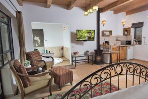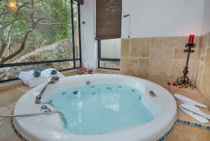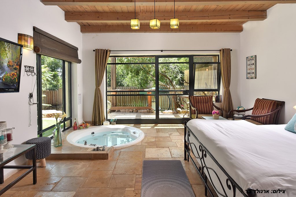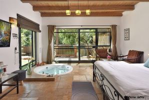 המבנה של היחידות בנוי אבן טבעית למראה מיוחד במינו, חלונות גדולים מכניסים הרבה אור ואוויר צח אל הסוויטות. מיד בכניסה אל היחידות תשמחו לגלות אמבט ג'קוזי מפנק ומענג, הג'קוזי שקוע ברצפה ואתם מוזמנים לטבול בו בהנאה. את כל החלונות הגדולים תוכלו לכסות עם וילונות אטומים לקבלת פרטיות מרבית. לצד אמבט הג'קוזי פינת ישיבה נוחה ומיטה זוגית מפנקת נוחה.