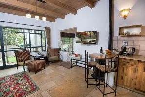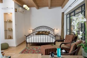 מיטה זוגית גדולה ממתינה לכם נוחה ומפנקת עם מצעים איכותיים, כלי מיטה רכים ומזרן נוח. לצד המיטה חלונות גדולים המשקיפים על החצר הפסטורלית הצמודה, אמבט הג'קוזי הזוגי במתחם נמצא במרחק פסיעה. להשלמת האווירה הרומנטית בימי החורף הקרירים כוללות הסוויטות של ברכתא גם קמין לחמימות נעימה ויצירת אווירה. בואו לבשל את הארוחות שלכם במטבחון מאובזר ונוחה, פינת אוכל זוגית קטנה תשמש להגשת הארוחות.