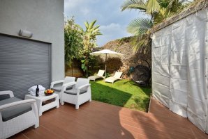 החצר כוללת גם פינות ישיבה ומיטות שיזוף כך שיהיה לכם נוח לשבת בחוץ וליהנות מהשמש החמימה והאווירה הפסטורלית.