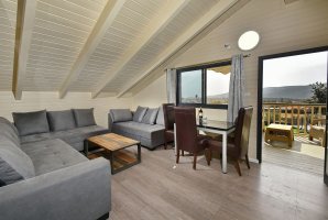 לינה במיטה זוגית נוחה עם מצעים איכותיים וכלי מיטה, ג'קוזי זוגי מלבני מפנק, מיזוג אוויר, פינת אוכל, פינת ישיבה, מסך טלוויזיה עם מבחר ערוצים, מערכת קולנוע ביתית, חדר רחצה מאובזר. הצימרים המשפחתיים כוללים קומת גלריה עם מזרנים לילדים ומיטות לילדים.
