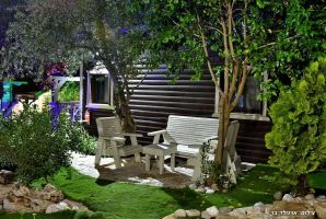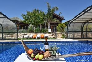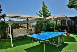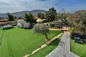 את המתחם כולו מקיפה חצר נופש מושקעת ונעימה עם מדשאות ירוקות, פינות ישיבה, ערסלים נוחים, נדנדה, ג'קוזי ספא גדול, בריכה פרטית (מחוממת ומקורה בעונה), שולחן סנוקר, עמדת ברביקיו מאובזרת ומעטפת של נופים קסומים.