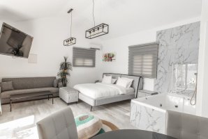 איך שהגעתי לכאן נרגעתי, כי ראיתי שבאמת הכל נראה בדיוק כמו שראיתי בתמונות. מתחם יפה שקט, והאזור הבריכה מאוד כיפי. החדר עצמו נוח ויפה, ויש פרטיות ואווירה טובה. המארחים כאן נחמדים מאוד. היה שווה להגיע!