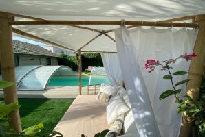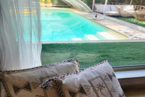 את הצימר מקיפה חצר נופש מפנקת עם בריכה פרטית מחוממת, ערסלים, מדשאה, מיטות שיזוף, תאורת גן, שמשיות, עמדת מנגל.