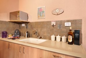 המטבחון בצימרים כולל מכונת אספרסו, כיריים חשמליים, פלטת שבת, קומקום חשמלי, מקרר.