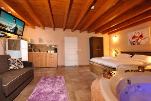 בכל צימר במתחם תיהנו מג'קוזי עגול רומנטי. הלינה היא במיטה זוגית עם מזרן אורתופדי נוח. בעבור לינה של אורחים נוספים יש במתחם ספה נפתחת. לא שכחנו להוסיף גם פינת אוכל, פינת סלון רומנטית, מרפסת, פינת קפה, חדר רחצה. חובבי סרטים ישמחו למצוא בצימרים מסך 46 אינטש, DVD, ערוצי כבלים.
