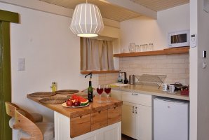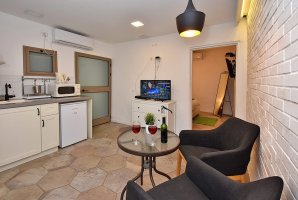 האירוח כולל פינת קפה ותה, חלב טרי, בקבוק יין, סבונים, נרות.
