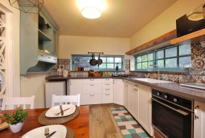 איזה אבזור קיים במטבח של סוויטה בכפר?האבזור הקיים במטבח של סוויטה בכפר: קומקום חשמלי, תנור, כיריים, מקרר קטן, מיקרוגל, טוסטר.
