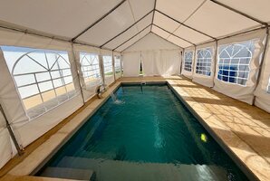 הוילה מצוידת בבריכת שחייה פרטית מגודרת ומחוממת, כך שתוכלו ליהנות מהשחייה בכל עונה. הבריכה אף מקורה להבטחת פרטיות והנאה מקסימלית.