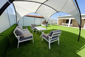 במתחם החיצוני תמצאו פינג פונג, מגרש כדורגל, שולחן סנוקר חיצוני ופינות ישיבה נוחות. המטבח החיצוני המאובזר ועמדת המנגל BBQ (לשימוש, לא בשבת) מבטיחים חוויה קולינרית מושלמת תחת כיפת השמיים.