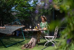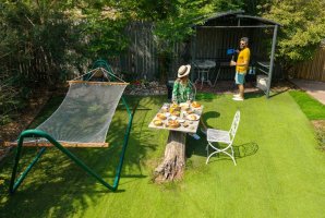 אורחי המתחם נהנים מחצר נופש מטופחת ופסטורלית עם מרפסת, ערסל גדול, פינת ישיבה, פינת מנגל, גינת צמחי תבלין ובריכה פרטית מחוממת ומקורה בעונה. החצר בלעדית לאורחי הבקתה.