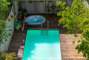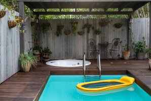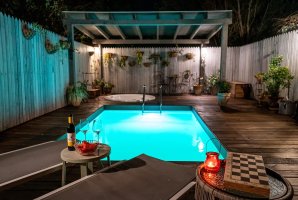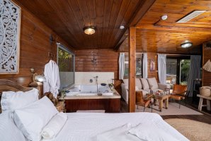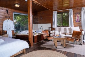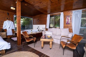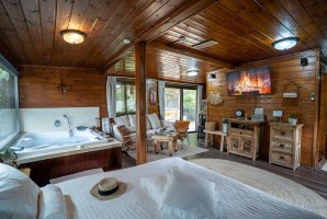 זוהי בקתה בודדה עם בריכה פרטית מחוממת ומקורה, ג'קוזי ענק ליד המיטה וג'קוזי גדול נוסף צמוד לבריכה