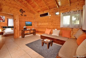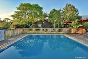 בקתת עץ רומנטית מוקפת צמחייה מטופחת, מרחבים ירוקים ואוויר צח, כבר בכניסה אל המתחם תבחינו בבריכה פרטית מרעננת קרירה סביבה תבלו את ימי הקיץ החמים ואת שעות הערב. מים צלולים ונקיים ממתינים לכם בבריכה, השמיים הכחולים משתקפים בבריכה ויוצרים יחד עם השמש הזורחת ומיטות השיזוף הזמנה לחופשה ישראלית קלאסית. בשעות הערב אור הירח משתקף בבריכה, יחד עם תאורת הגן היפה נוצרה האווירה הנכונה לרחצה לילית סביב הבריכה. עמדת ברביקיו מקצועית מאובזרת ממוקמת לצד הבריכה, זו הדרך להכין ארוחות טובות וטעימות בקלי קלות.