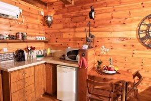 איזה אבזור קיים במטבח של בקתות עץ אורן?האבזור הקיים במטבח של בקתות עץ אורן: קומקום חשמלי, מכונת אספרסו / קפה, כיריים, מקרר קטן, מיקרוגל.