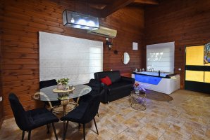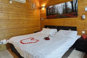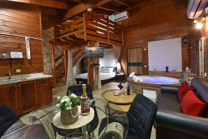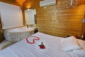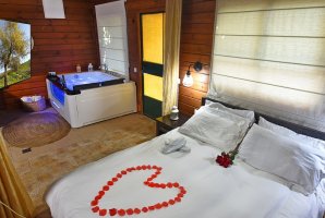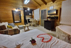 ג'קוזי זוגי עגול מוקף נרות ממתין לכם בכל יחידה, אל תוותרו על הבילוי המרגיע בג'קוזי. הלינה היא במיטה זוגית כאשר ניתן לקבל בתיאום מראש פתרונות לינה לילדים. מיזוג אוויר בכל יחידה יאפשר לכם לבחור את הטמפרטורה המתאימה לכם. לנוחותכם בכל יחידה פינת אוכל משפחתית קטנה, פינת ישיבה, מרפסת פרטית, קומת גלריה, מסך טלוויזיה עם מבחר ערוצים.