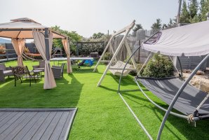 את יחידות האירוח מקיפה גינה פרטית עם מדשאה ירוקה, בריכה מרעננת ומגודרת, מיטות שיזוף, פינות ישיבה נוחות, ערסלים, נדנדה, עמדות מנגל ונוף גליל קסום.