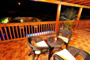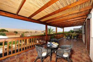 שני הצימרים חולקים מרפסת משותפת עם 2 פינות ישיבה נוחות.