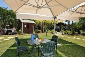 את 3 הבקתות מקיפה חצר נופש בה תמצאו בריכה פרטית מחוממת ומקורה. לצד הבריכה פינות ישיבה, מדשאה, ספסלים, נדנדה, צמחייה, ג'קוזי זרמים מפנק, סאונה חמה ועמדת מנגל. החצר משותפת ל-3 הבקתות.