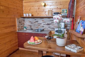 איזה אבזור קיים במטבח של בקתה בגליל?האבזור הקיים במטבח של בקתה בגליל: קומקום חשמלי, כיריים, מקרר קטן, מיקרוגל, טוסטר.