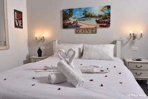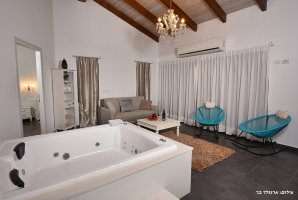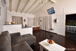 מה בסוויטות?סוויטה משפחתית (קומה ראשונה) עם 2 חדרי שינה זוגיים, חדר שינה לילדים, סלון מרווח, מטבח מאובזר בכל הדרוש. בסוויטה ג'קוזי ספא מפנק. הלינה היא במיטות נוחות כאשר פינת הישיבה בסלון נפתחת למיטה זוגית. בסלון גם פינת ישיבה מול מסך שטוח עם ערוצים של יס. המטבח כולל פינת אוכל ומטבח מאובזר. בסוויטה המשפחתית 2 חדרי רחצה. יש לסוויטת חצר גדולה. סוויטת זוגית (קומה שנייה) עם חלל אחד גדול בו תיהנו מג'קוזי זוגי גדול. בסוויטה מיטה זוגית נוחה, חדר רחצה, מטבחון, פינת ישיבה, מסך שטוח עם ערוצי יס, מרפסת עם נוף לכנרת.סוויטה דה לוקס כוללת חדר שינה, סלון, מטבחון, חדר רחצה ומרפסת עם נוף לכנרת (סוויטה בגודל של 60 מ"ר). בסוויטת ג'קוזי זרמים זוגי, מיטה זוגית מפנקת, מסך שטוח עם ערוצי יס, פינת אוכל, מטבחון.