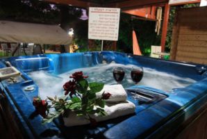 לרשות אורחי הבקתות בריכה פרטית מרעננת ומגודרת, ג'קוזי זרמים מפנק וסאונה חמה!