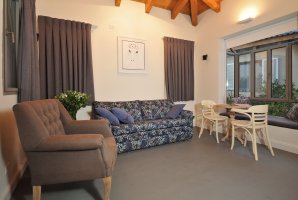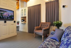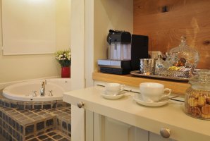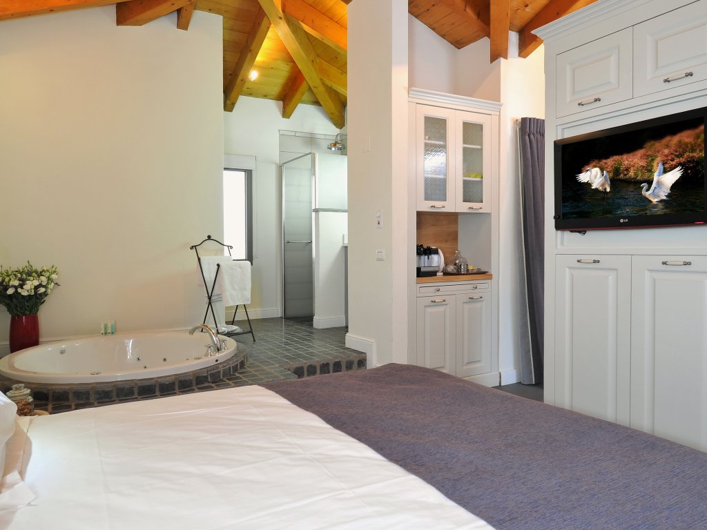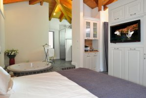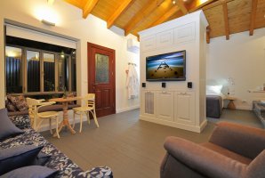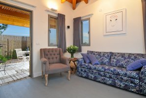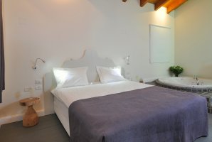 לינה במיטה זוגית נוחה עם מצעים איכותיים וכלי מיטה. בכל צימר גם פינת ישיבה, מסך שטוח, מטבח להכנת שתייה חמה כולל מכונת אספרסו. כראוי לצימר רומנטי תמצאו כאן אמבט ספא חם וחלוקי רחצה. סגנון העיצוב יוקרתי עם אלמנטים של כפר.