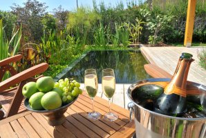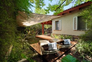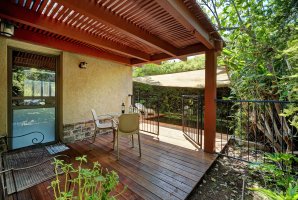 לכל סוויטה יש חצר פרטית הטובלת בצמחיה עשירה, מגוונת וצבעונית. צמחים מיוחדים לטיהור המים גדלים מסביב לבריכת השכשוך הטבעית הפרטית לכל יחידה. על כל 1 מ"ר מים יש צורך ב-1 מ"ר צמחייה לצורך שמירת האיזון האקולוגי- כך שנמנע השימוש הכלור. הבריכה המחוממת, ממוקמת במרכז החצר הפרטית, ומצוידת בכורסאות מעץ מלא, וירידה נוחה אל המים. גינות דקורטיביות ושטחי תבלין פזורים מסביב לפינות הישיבה, הגדר והמרפסת.