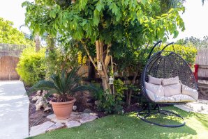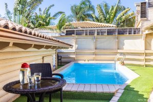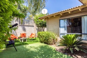 בריכת שחייה פרטית מרעננת ומגודרת, מדשאה מטופחת, פינות ישיבה, תאורת גן.