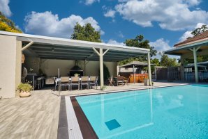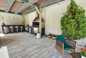 את רוב זמנם נהנים אורחי המתחם לבלות בחצר הנופש הצמודה. יש בחצר בריכה מרעננת, ג'קוזי ספא מרובע, מיטות שיזוף, סאונה חמה, פינות ישיבה, עמדת מנגל, פרגולה להצללה, תאורת גן לרחצה לילית.