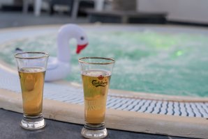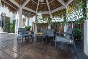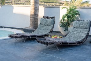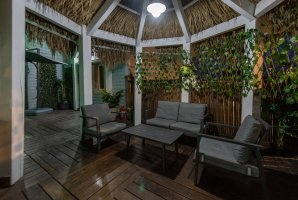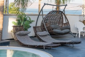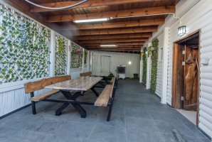 הבקתות מוקפות חצר נופש מטופחת ועשירה עם שתי בריכות בנויות פרטיות מחוממות ומקורות, מיטות שיזוף, פינות ישיבה, מדשאה, תאורה רומנטית, שמשיות, ג'קוזי ספא גדול, שולחן סנוקר, עמדת ברביקיו.