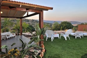 האורחים של הצימרים נהנים מבריכה פרטית מגודרת בחצר. לצד הבריכה תיהנו גם משולחן גינה, מטבח חיצוני, עמדת ברביקיו, ערסל, מיטות שיזוף. החצר משקיפה על נוף קסום.