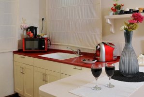 איזה אבזור קיים במטבח של לה פאצ'ה?האבזור הקיים במטבח של לה פאצ'ה: קומקום חשמלי, מכונת אספרסו / קפה, מקרר קטן, מיקרוגל.