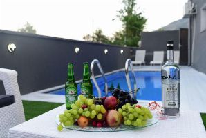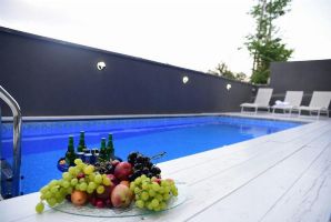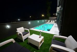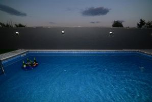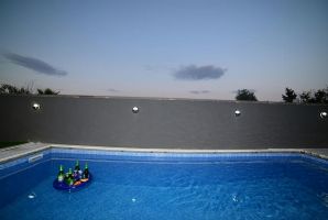 חצר נופש מטופחת מקיפה את המתחם עם מדשאות, עמדת מנגל, תאורת גן, ריהוט גן נוח ובריכה פרטית מרעננת. אורחי המתחם נהנים מאוד מהבילוי בבריכה.