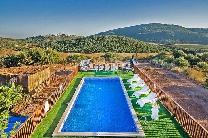 את הצימרים מקיפה חצר נופש מטופחת ומרווחת. האטרקציה המרכזית בחצר היא בריכה פרטית מגודרת שמיועדת לאורחי הצימרים. החצר כוללת גם פינות ישיבה נוחות, שולחן פינג פונג, שולחן סנוקר, עמדת ברביקיו. נופי הגליל מקיפים את המתחם והופכים אותו קסום ופסטורלי עוד יותר.